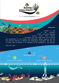 Dépliant d'information grand public sur le sentier sous-marin de l'île aux Canards (en français, anglais et japonais).